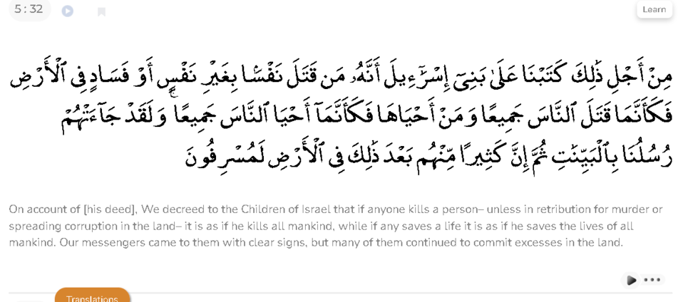 To know more you can click on the link. Both the Quran and Hadith (prophet's sayings and actions) are available online. We are not associated in any way but we paste links for further reading. You can click on LEARN and then Ibn kathir to read his commentary or click play to listen to an audio clip. Below image is for illustration purposes.